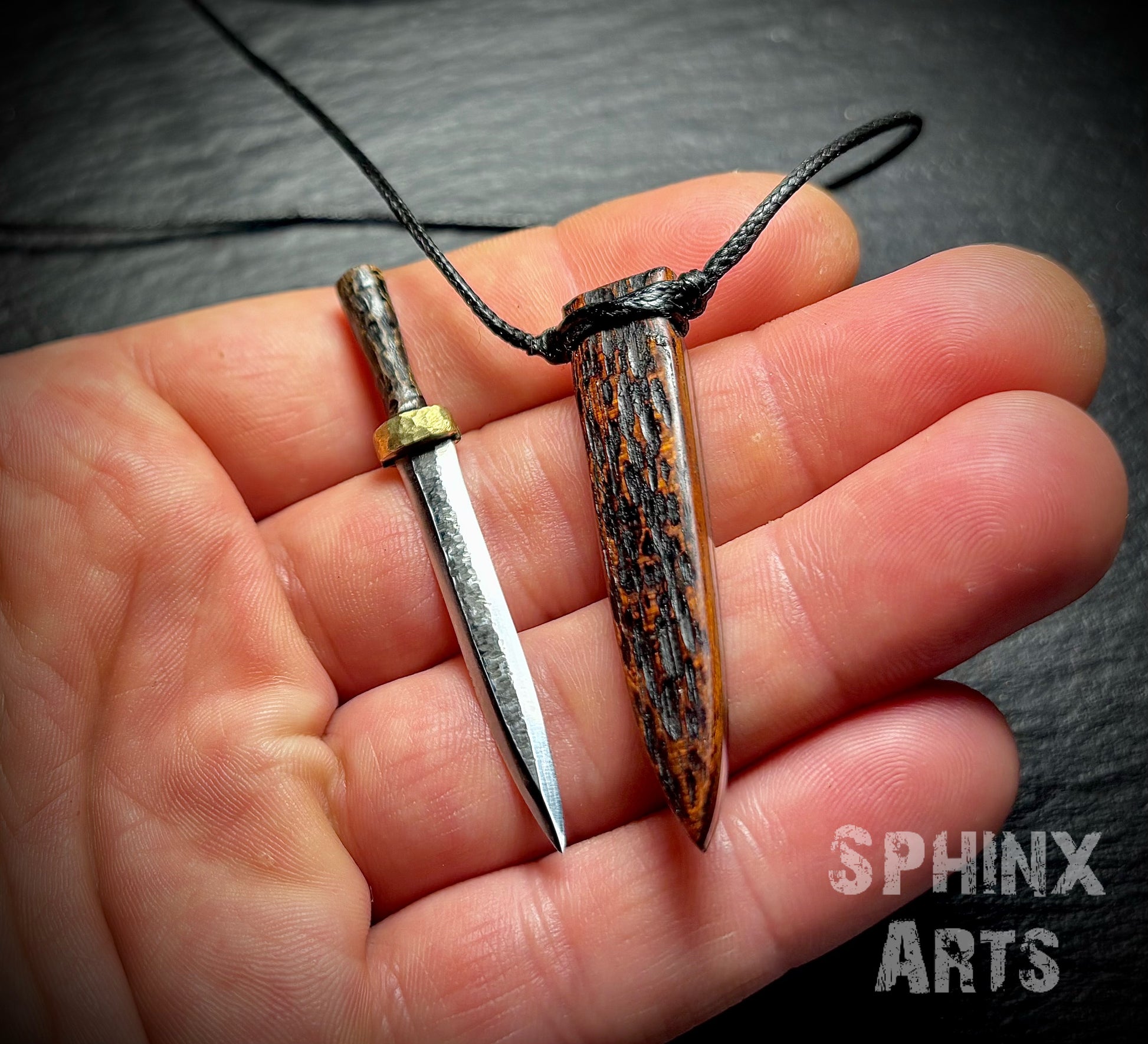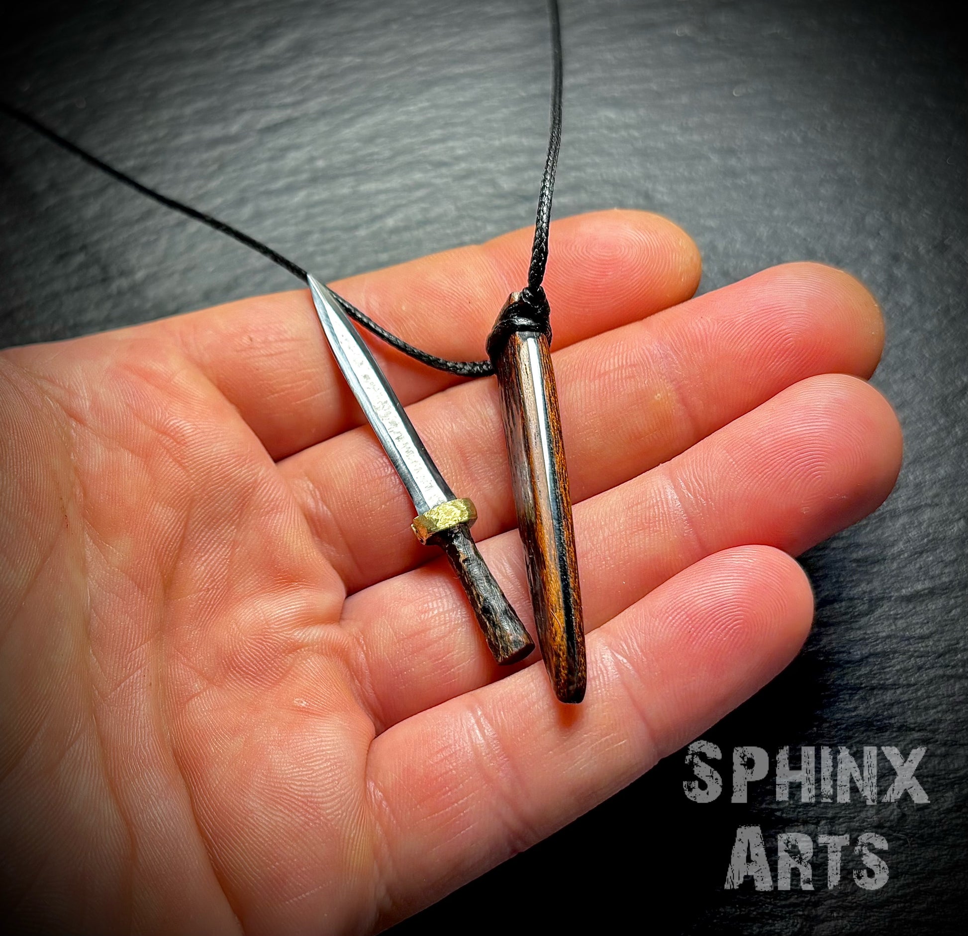 This mini sword is handcrafted in my small workshop in Poland. Its blade is made from N690 stainless steel, making it tough, well-hardened, and very sharp. Though small, it’s fully functional and versatile.